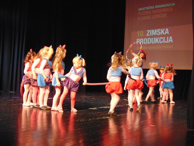 POŽEGA – Umjetnička organizacija Plesna radionica Ilijane Lončar deseti put zaredom pripremila je polugodišnji zimski prikaz rada. Jubilarnu zimsku produkciju koja sadrži 19 koreografija danas je premijerno u Gradskom kazalištu Požega izvelo 130 plesača od 3 do 18 godina, a reprizna izvedba požešku publiku očekuje sutra, 24. siječnja od 11,00 sati kada nastupaju mlađe dobne skupine te u 18,00 sati kada će svoj program izvesti stariji plesači.