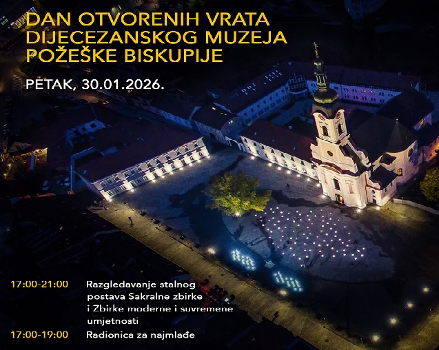 POŽEGA – Dijecezanski muzej Požeške biskupije (Trg Svete Terezije 6) u petak, 30. siječnja otvara svoja vrata svim posjetiteljima i poziva na večer ispunjenu umjetnošću i baštinom.