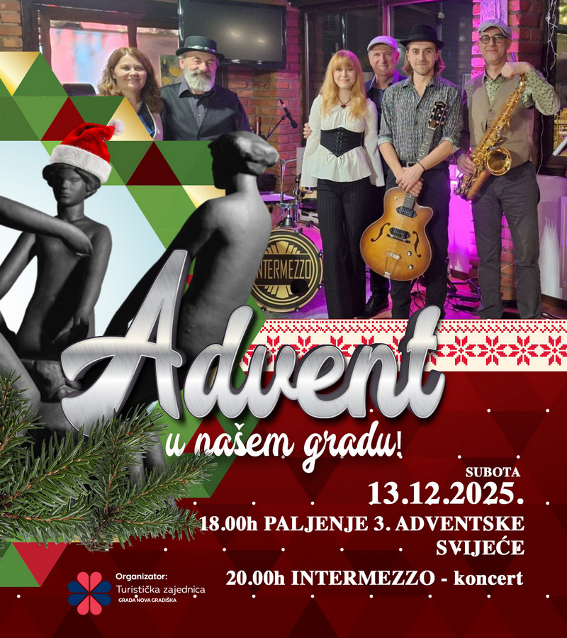 Uvjerite se u to i ovaj vikend, jer Advent u našem ( ali i vašem gradu ) ima sve potrebno za dobro raspoloženje. Nakon što je atmosferu okusio sveti Nikola, ovih će dana to učiniti i Djed Božićnjak, spreman s punom vrećom darova, staviti osmijeh na svako dječje lice. D.J slušaonica, koncert benda Intermezzo,predstava za najmlađe, paljenje treće Adventske svijeće, bogata gastro i sajamska ponuda, mirisi i okusi koji mame.