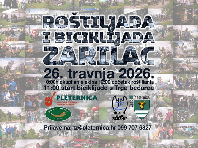 Posljednjeg vikenda u travnju Zarilac će ponovno postati mjesto okupljanja, druženja i dobre zabave. Grad Pleternica, Udruga Mladi za mlade Pleternica, Športsko ribolovno društvo Londža i Turistička zajednica Grada Pleternice, i ove godine organiziraju tradicionalnu Roštiljadu i Biciklijadu.