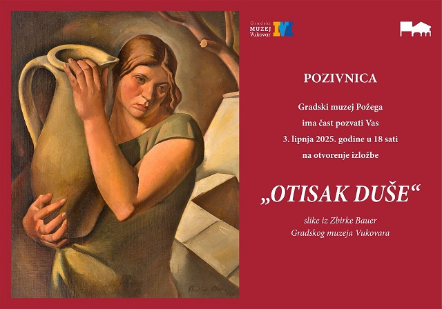 POŽEGA – U izložbenoj dvorani Julija Kempfa Gradski muzej Požega ugostit će izložbu “otisak duše” koja predstavlja slike iz Zbirke Bauer Gradskog muzeja Vukovara. Otvorenje je 3. lipnja u 18,00 sati.