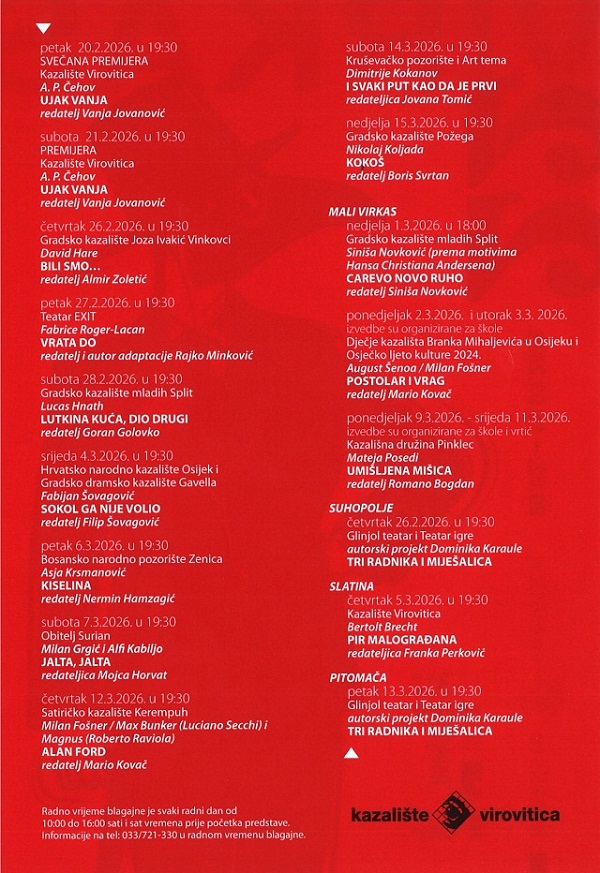 U Virovitici “Kokoš” igra u nedjelju 15. ožujka od 19,30 sati.