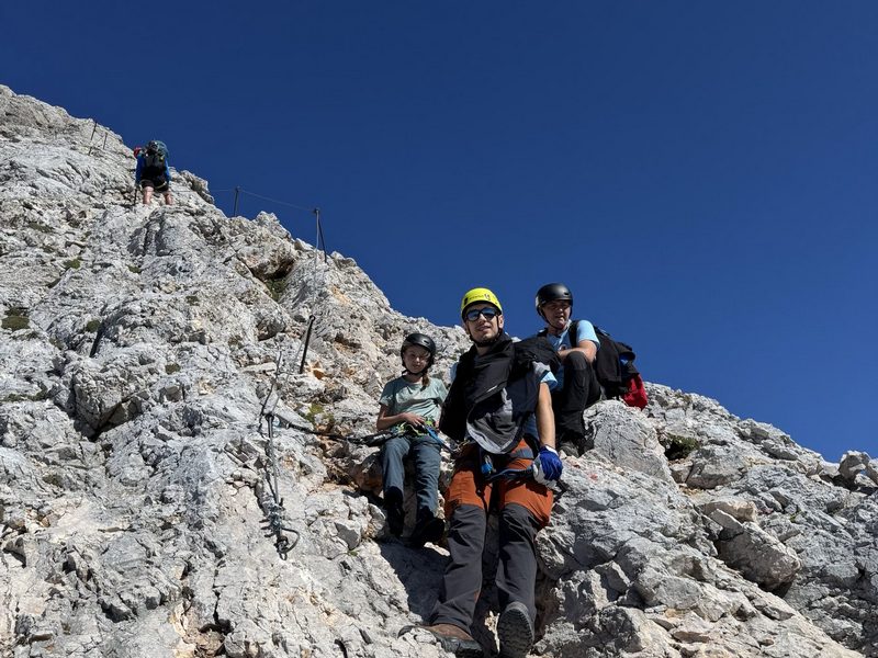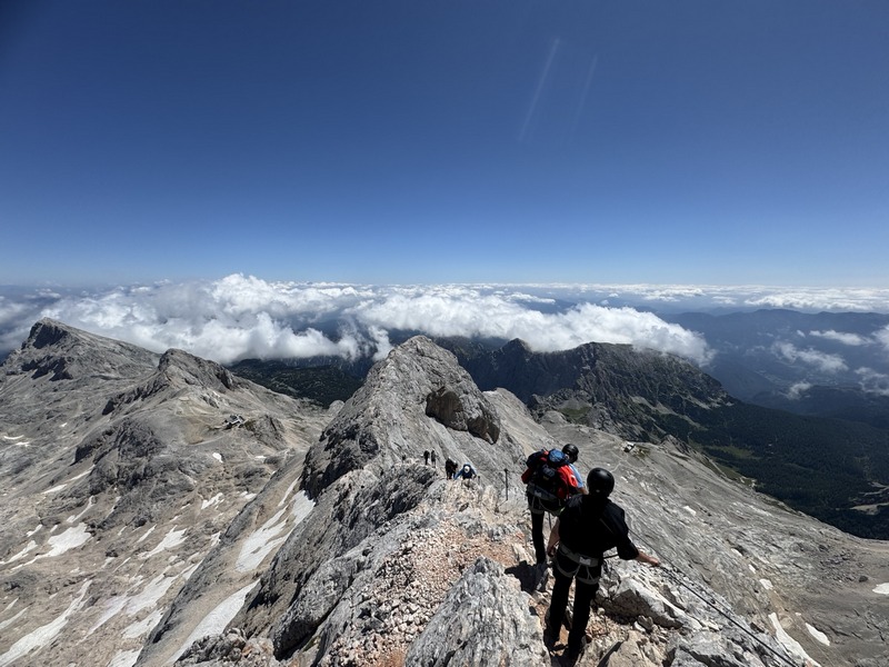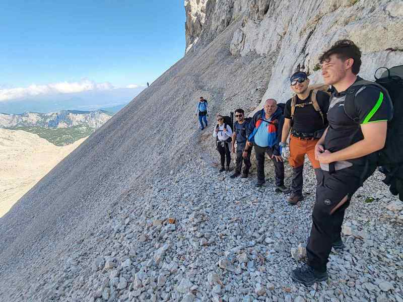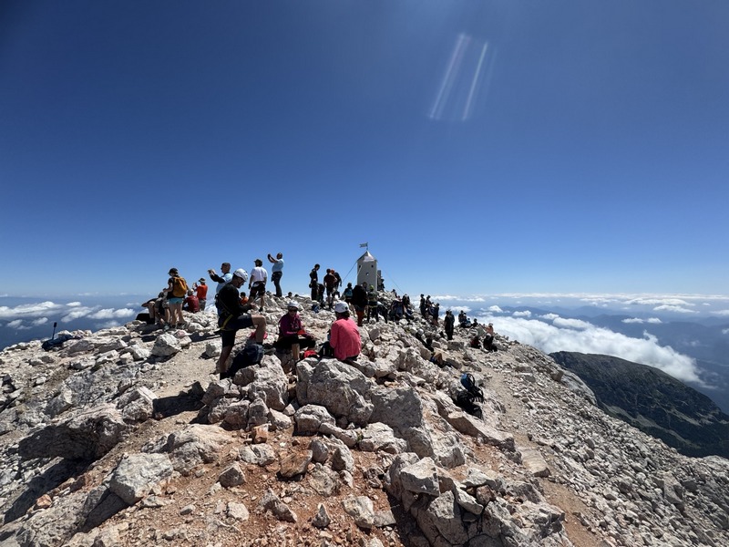 Uspon na vrh uključivao je i via ferratu, koja je za neke bila novo iskustvo. No svi su se brzo snašli i uz odličnu podršku vodiča nastavili prema vrhu. Nakon oko dva sata tehničkog uspona, njih osmero je stajalo na vrhu Triglava, uživajući u prekrasnom, sunčanom danu. Posebno treba izdvojiti to što je Petra Barišić, samo 11 godina stara, također osvojila vrh! Petra je prošle godine završila malu planinarsku školu, a ovaj uspon bio je kruna njezine planinarske sezone – pravi ponos društva!