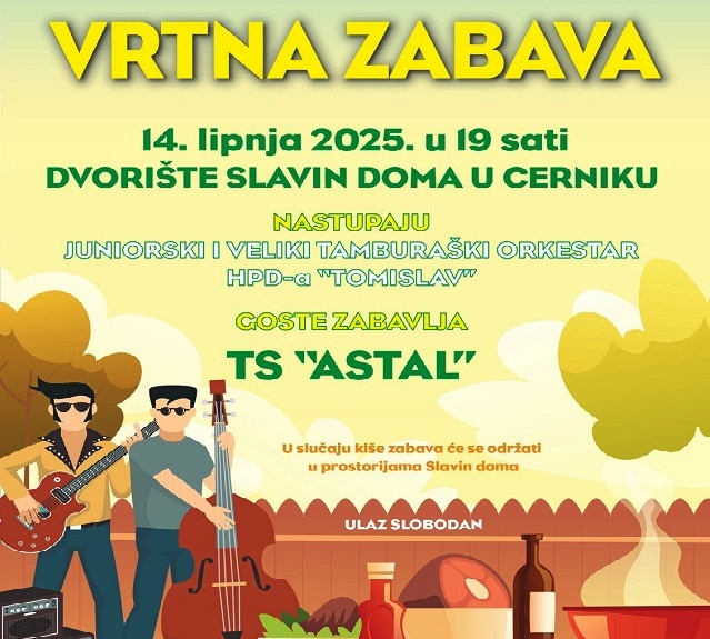 Najstarija, najprepoznatljivija i najrspjevanija cernička udruga, društvo koje ove godine, brojnim aktivnostima, proslavlja veliki 120. rođendan, prvi dio godine, simbolično će “zaključiti” Vrtnom zabavom, u subotu, 14.lipnja. Tradicionalno je to godišnje događanje u “kalendaru” društva i događaj koji se, znaju to svi koji su bar jednom navratili, ne propušta.