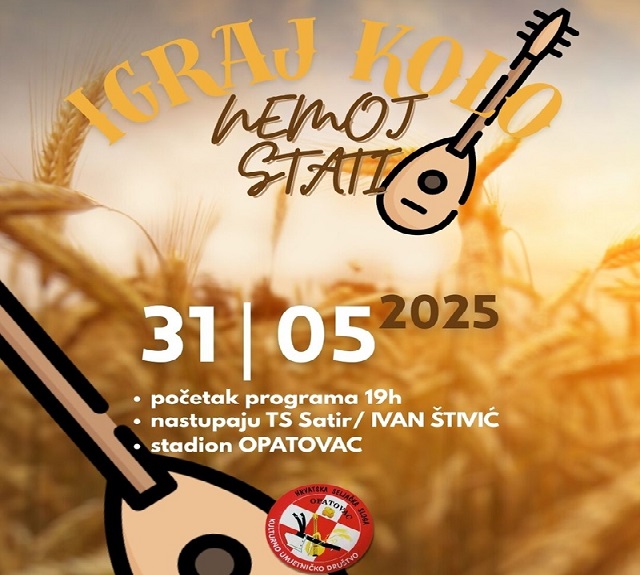 OPATOVAC – U susret Danu Općine Cernik, vjerni čuvari tradicije, članovi KUD-a “Hrvatska seljačka sloga”,Opatovac, društva koje je 2023. proslavilo prvih 102 godine djelovanja, posljednjeg dana mjeseca svibnja, organiziraju treću smotru folklora ”Igraj kolo, nemoj stati!” na kojem će, uz domaćine, nastupiti i 8 gostujućih društava.