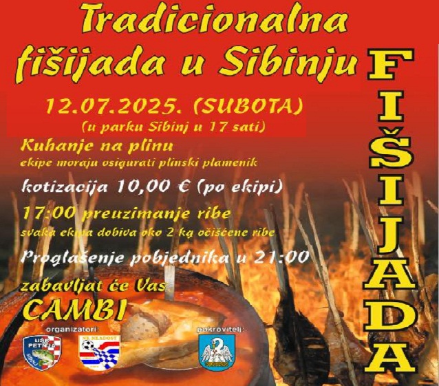 Uz osiguran fiš za sve koji navrate, tu je i zabava uz Cambi, stoga, 12.srpnja rezervirajte za posjet Sibinju. Domaćini čekaju s dobrodošlicom.
