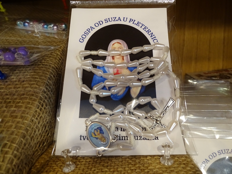 “Kroz svih devet dana teče rijeka ljudi, velika je to organizacija i treba puno toga pripremiti. Naša suvenirnica se priprema kako bi se svim hodočasnicima, osim vrijednih duhovnih darova koje nose s hodočašća, ponudila i mogućnost kupnje vjerskih i ostalih suvenira. Suveniri su povezani sa Svetištem, kulturnom, povijesnom i etnografskom baštinom pleterničkog kraja. Upravo ta mogućnost da ih hodočasnici i drugi posjetitelji nabave za sebe, svoje obitelji i domove svakako doprinosi daljnjoj promociji Svetišta Gospe od suza, ali i čitavog kraja.” priča nam Barbara.