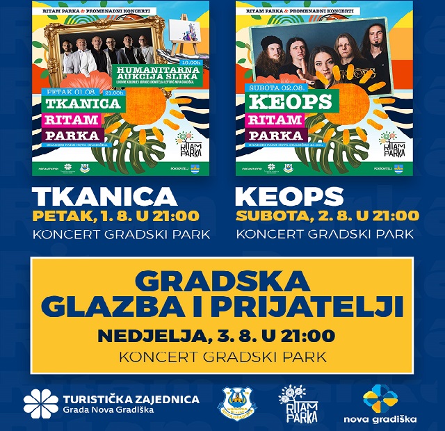 NOVA GRADIŠKA – Nakon petka u znaku tradicije, prve subote u kolovozu u gradski park stiže žestoki zvuk metala, a vikend će, na najbolji način, zaključiti majstori dobre atmosfere, Gradska glazba Nova Gradiška i prijatelji. Navratite, Ritam parka čeka…