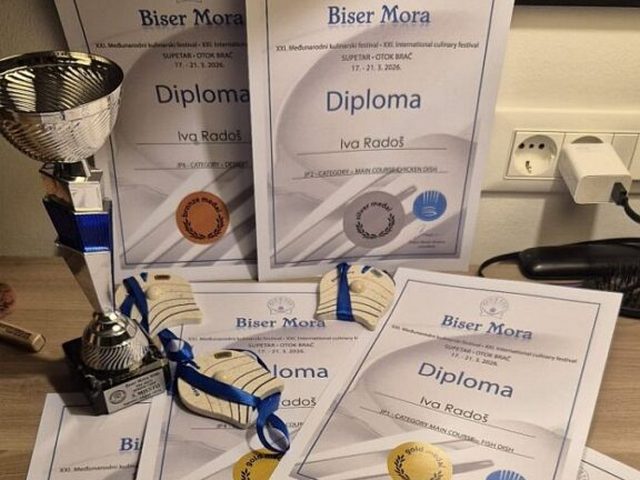 POŽEGA – Učenica Obrtničke škole Požega Iva Radoš na prestižnom kulinarskom natjecanju Biser mora, u juniorskoj kategoriji chefova do 22 godine osvojila je čak šest medalja i priznanje za treće mjesto u kategoriji najjunior chef.