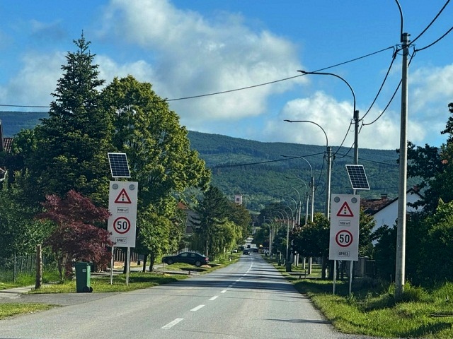 KAPTOL – U Požeškoj ulici u Kaptolu postavljen je radar za mjerenje brzine i upozorenje vozačima o ograničenju brzine.