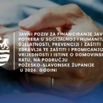 POŽEGA – U svrhu dodjele financijskih sredstava za sufinanciranje programa i projekata od interesa za opće dobro koje provode organizacije civilnog društva (udruge), objavljen je Javni poziv za financiranje javnih potreba u socijalnoj i humanitarnoj djelatnosti, prevenciji i zaštiti zdravlja te zaštiti i promicanju vrijednosti i istine o Domovinskom ratu, na području Požeško-slavonske županije u …