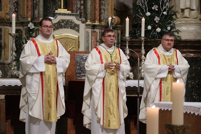 Na slavlju je među ostalima sudjelovao požeški paroh o. Nikola Petrović. Pozdravljajući okupljene biskup je potaknuo sve da u otajstvu Euharistije i Božje Riječi otkriju ono što Isus svojim rođenjem i danas poručuje. U homiliji se biskup osvrnuo na riječi naviještenih liturgijskih čitanja istaknuvši da nam sveti Ivan apostol i Isusov učenik u evanđeoskom ulomku otkriva četiri Božje tajne: da je Bog vječan, da je Bog stvoritelj svega, da se Bog utjelovio i da nas je Bog svojim rođenjem obogatio. Dodao je da Božić otkriva posebnu moć i privlačnost Isusove ljubavi, koja nam donosi posebnu radost i koja ispunja svako srce i svaku dušu. „Radost Evanđelja ispunjava srce i živote svih koji susretnu Isusa. Oni koji prihvate njegovu ponudu spasenja oslobođeni su od grijeha , žalosti, unutarnje praznine i usamljenosti.“, naglasio je podsjetivši na riječi pape Franje iz Apostolske pobudnice Radost Evanđelja. S Kristom se radost neprestano nanovo rađa i Radost Evanđelja je prema riječima Pape u istom dokumentu „za sve ljude – nitko ne smije biti isključen. To je ono što je anđeo navijestio pastirima u Betlehemu: Ne bojte se! Evo javljam blagovijest, veliku radost za sav narod!“