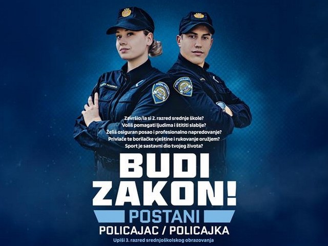 Objavljen je natječaj za upis 550 polaznika/polaznica u Program srednjoškolskog obrazovanja odraslih za zanimanje policajac/policajka, te natječaj za upis 130 učenika/učenica u III. razred za stjecanje strukovne kvalifikacije za zanimanje policajac/policajka i 20 učenika/učenica za u III. razred Policijske škole za potrebe Ministarstva Pravosuđa, uprave i digitalne transformacije, te se detaljne informacije mogu naći na policijska-akademija.gov.hr/postani-policajac-policajka.