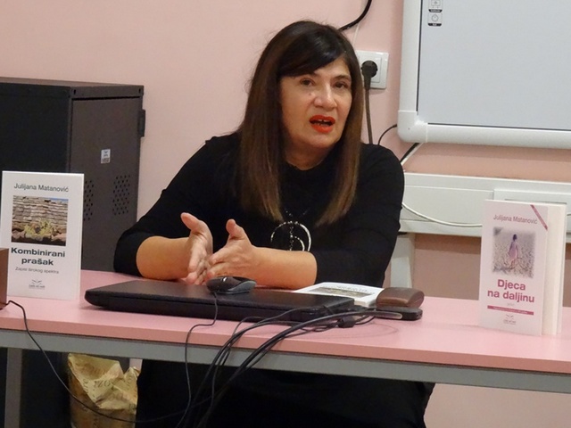 Toplo, pitko, mirisno, poput prve jutarnje kave ili “šnite” tek ispečenog kruha, istovremeno i čvrsto i meko, kao tkanje stare krpare, onako kako i piše, Julijana Matanović, generacijama studenata omiljena profesorica i nagrađivana književnica, na isti način i razgovara. S novinarima i čitateljima, sasvim svejedno. Potvrdila je to i netipična, ugodno neformalna promocija autoričine zbirke priča “Kombinirani prašak”, upriličena u Mjesecu hrvatske knjige, zaslugom urednice izdanja, nekadašnje Julijanine studentice, danas profesorice hrvatskog jezika i književnosti u Gimnaziji Nova Gradiška, Andree Divić. Uz prebiranje uspomena, zauvijek sačuvanih između korica knjiga, u foto albumima i spisateljičinoj memoriji, bila je to prigoda i za razgovor o pisanju, izdavaštvu i još pokojoj životnoj sitnici.