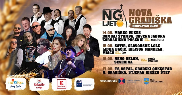 NOVA GRADIŠKA – Nova Gradiška će i ove godine, 29. put za redom, sredinom kolovoza, biti top kontinentalna destinacija- središte vrhunske zabave, sjajnih, besplatnih koncerata, primamljivih mirisa i okusa, cjelodnevnog šušura i prepoznatljivo dobre energije domaćina.Dođite i uvjerite se, sve je spremno za Novogradiško glazbeno ljeto, od četvrtka do nedjelja, 14.-17. kolovoza, manifestaciju po kojoj se “uštimavaju” godišnji odmori!