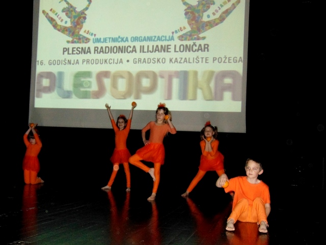 POŽEGA – UO Plesna radionica Ilijane Lončar u svojoj 16. godišnjoj produkciji požeškoj publici poklonila je jedinstveni plesno-likovni susret s bojama, novi projekt nazvan “Plesoptika”. U suradnji s požeškom slikaricom Anitom Grbavac Jakobović, priču o bojama ispričalo je u deset koreografija 135 plesača svih uzrasta. Bogate tonove raskošnoj priči dodala je i Anitina izložba “Colores porticuum” ( Boje arkade) koja je večeras otvorena uz premijernu izvedbu Plesoptike u Gradskom kazalištu Požega.
